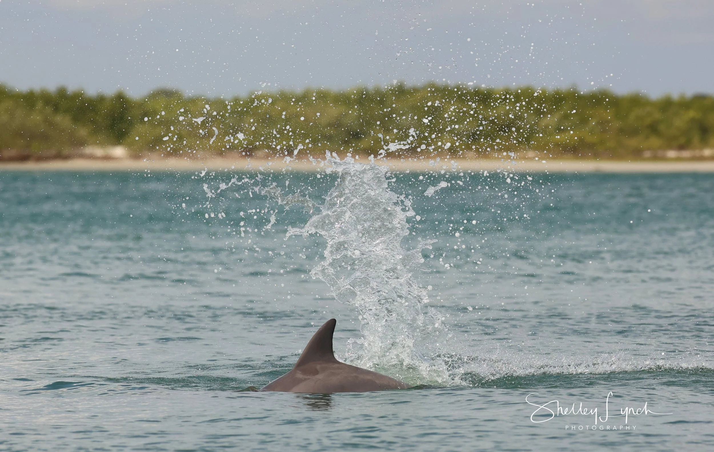 Today the lesson was tail slapping, a helpful technique used to help catch fish. Today the mom smacked her tail probably 10 times before this youngin' followed her lead and smacked his tail! It felt like the adult dolphins and myself all cheered for this little nugget learning his new skill.
