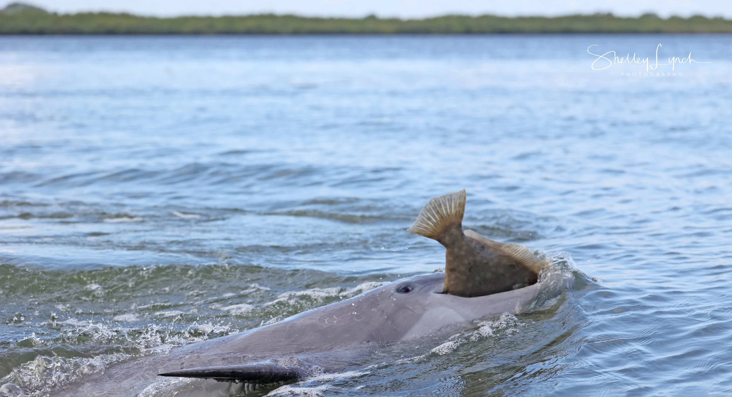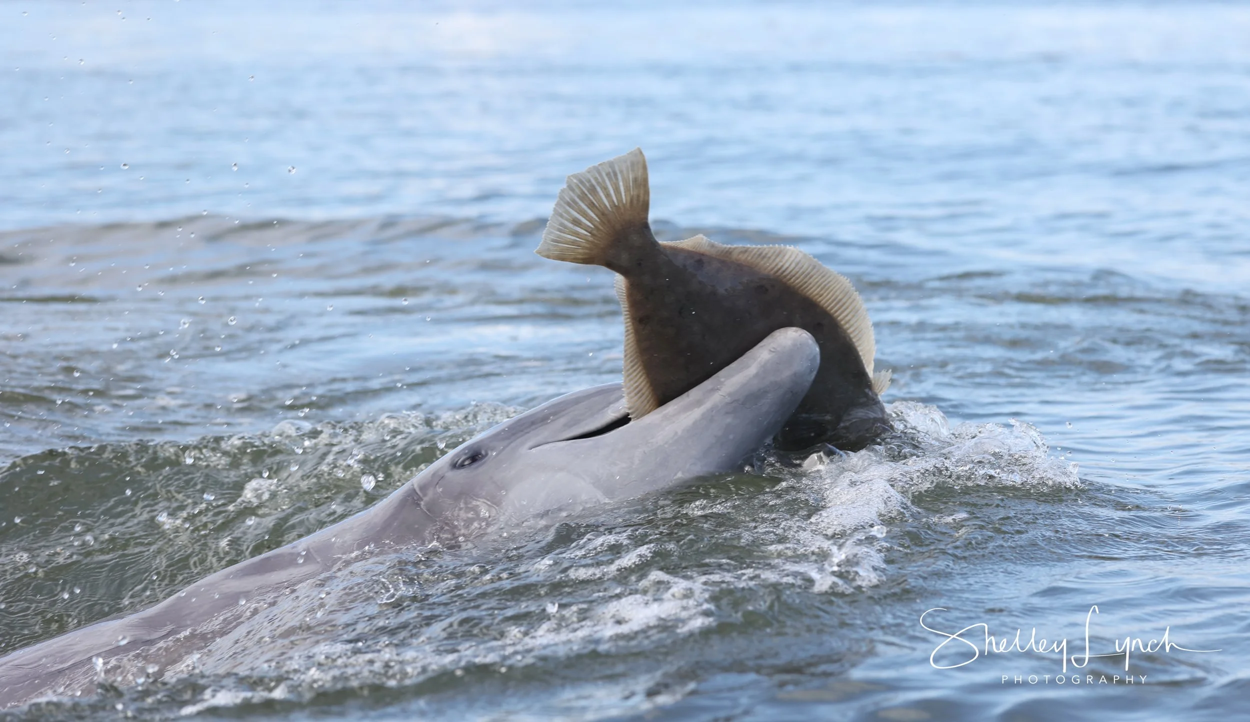 A couple minutes later she swam super close with a flounder and held it up for several seconds as she passed by with a little wake.