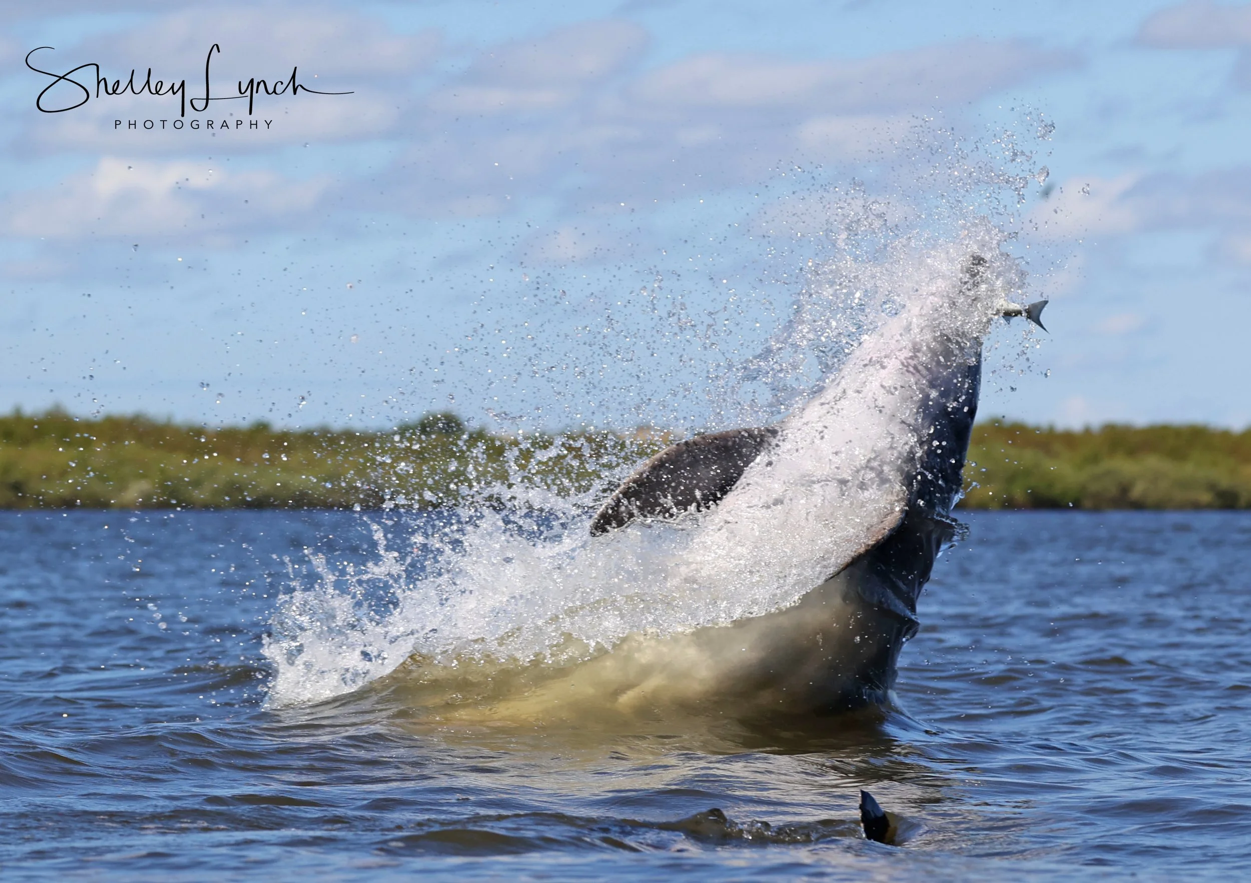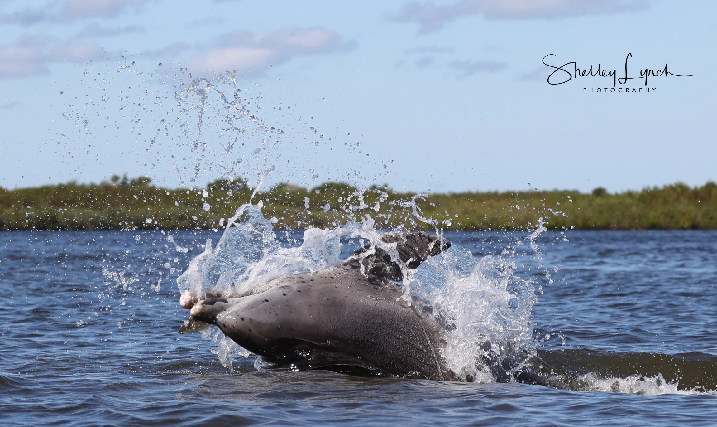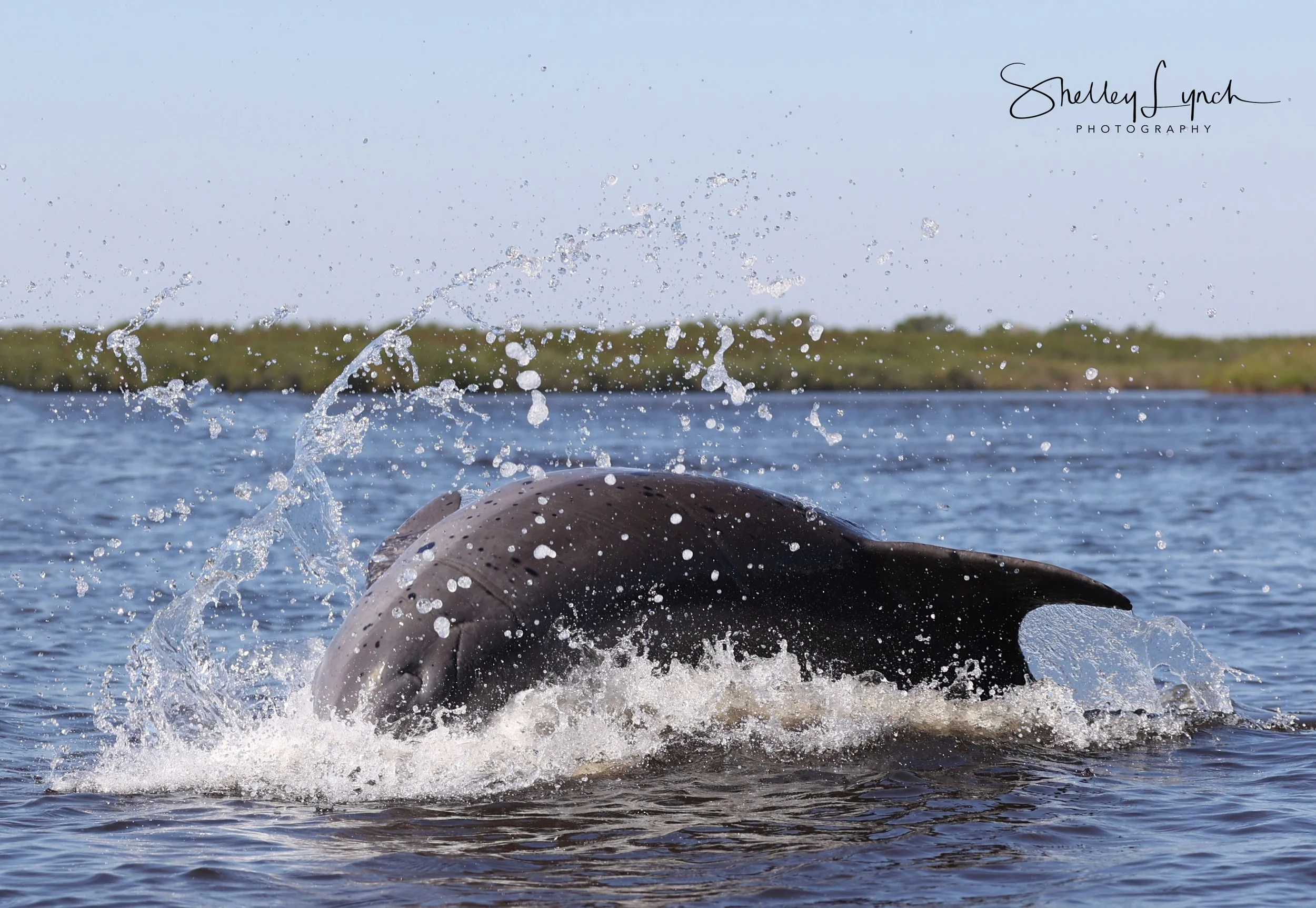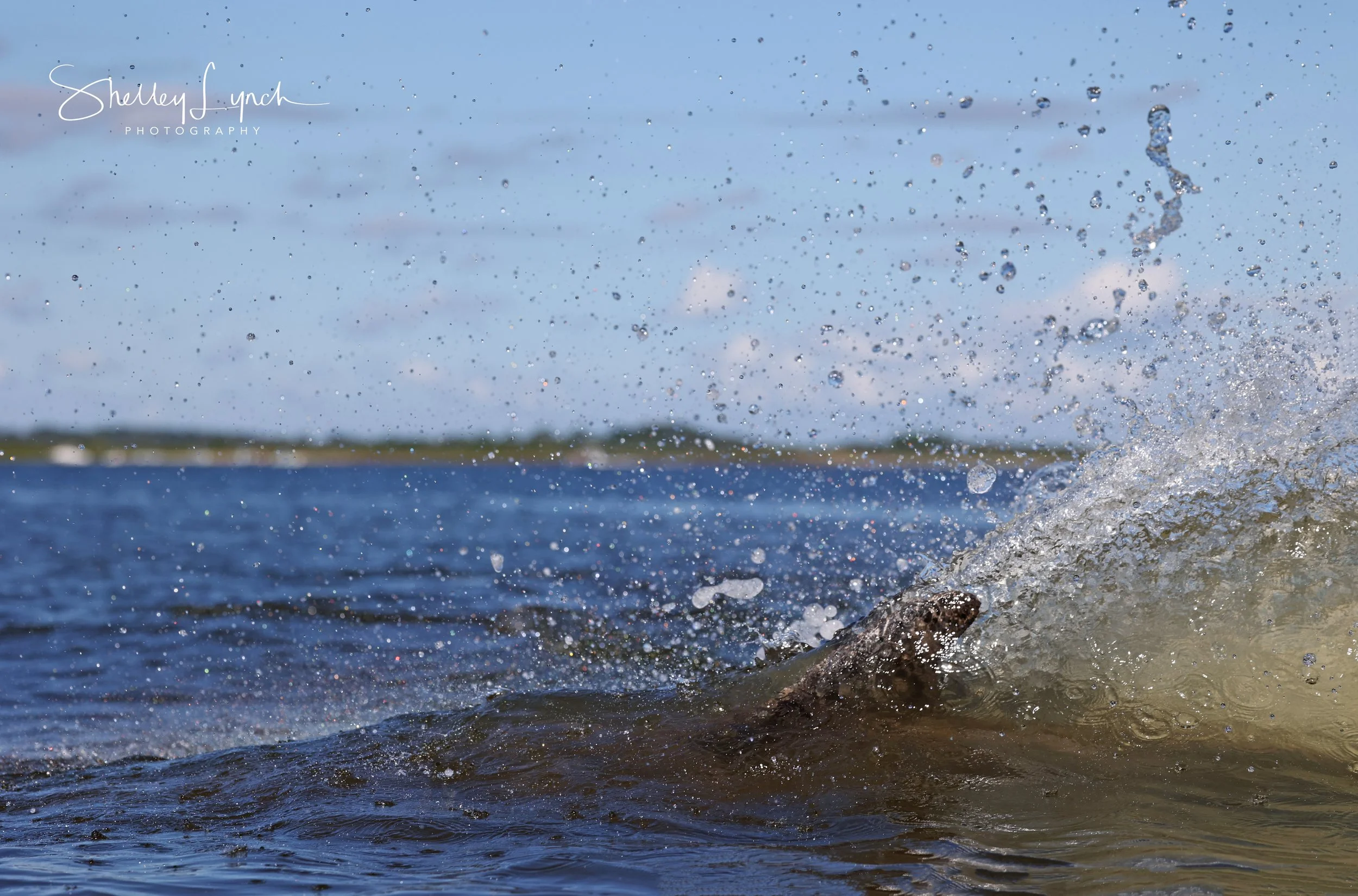 Some days it’s hard to get a photo of the dolphin because they are having so much fun making splashes and wake.