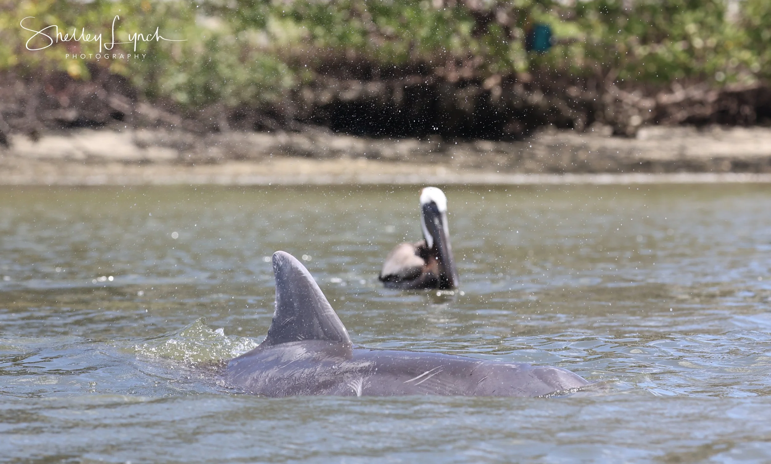 Loads of turtles, manatees and a couple pelicans were hanging around grabbing snacks while the dolphins enjoyed hugs and kisses. The cooler water seemed to make the dolphin frisky, enjoying tossing fish and jumping for joy.