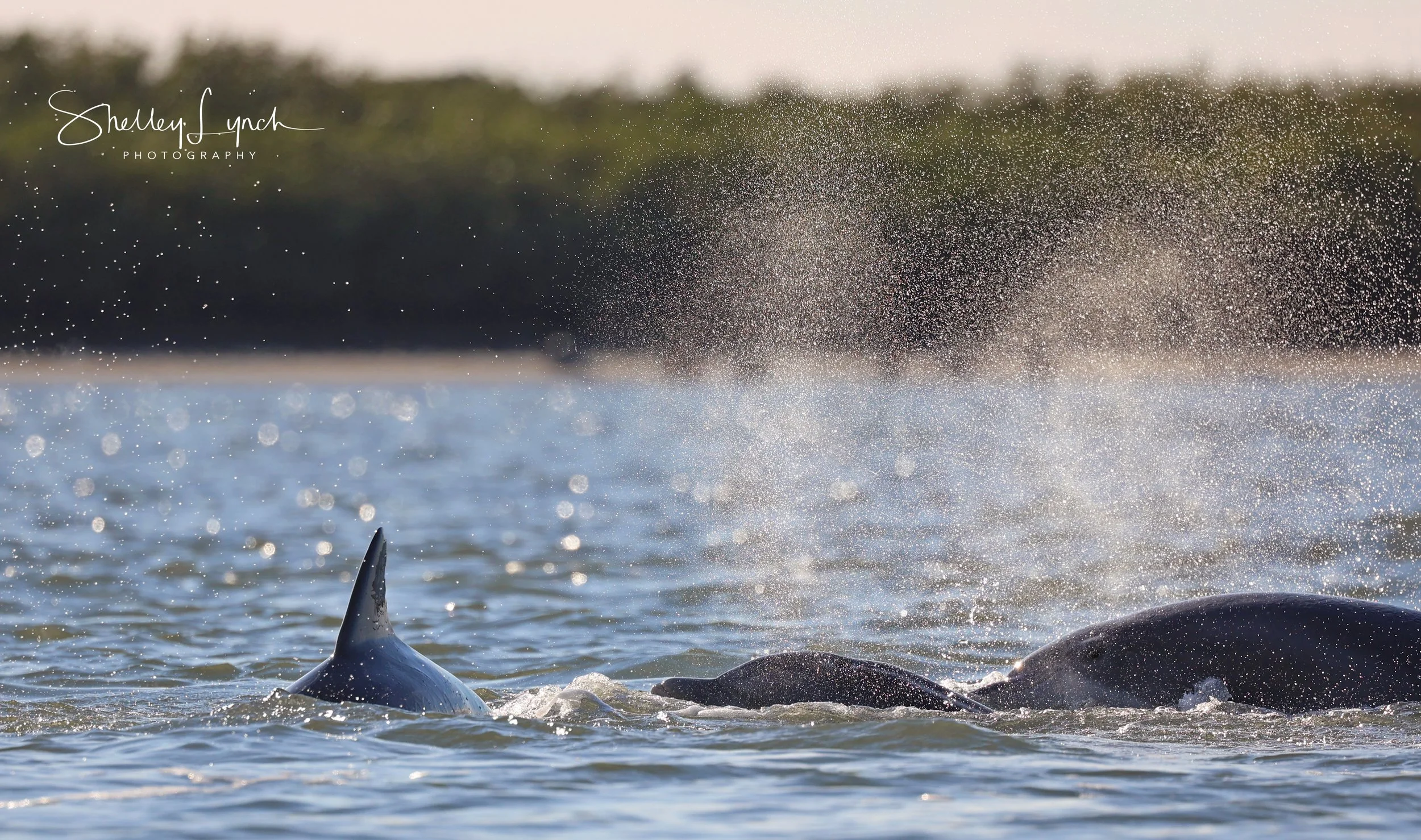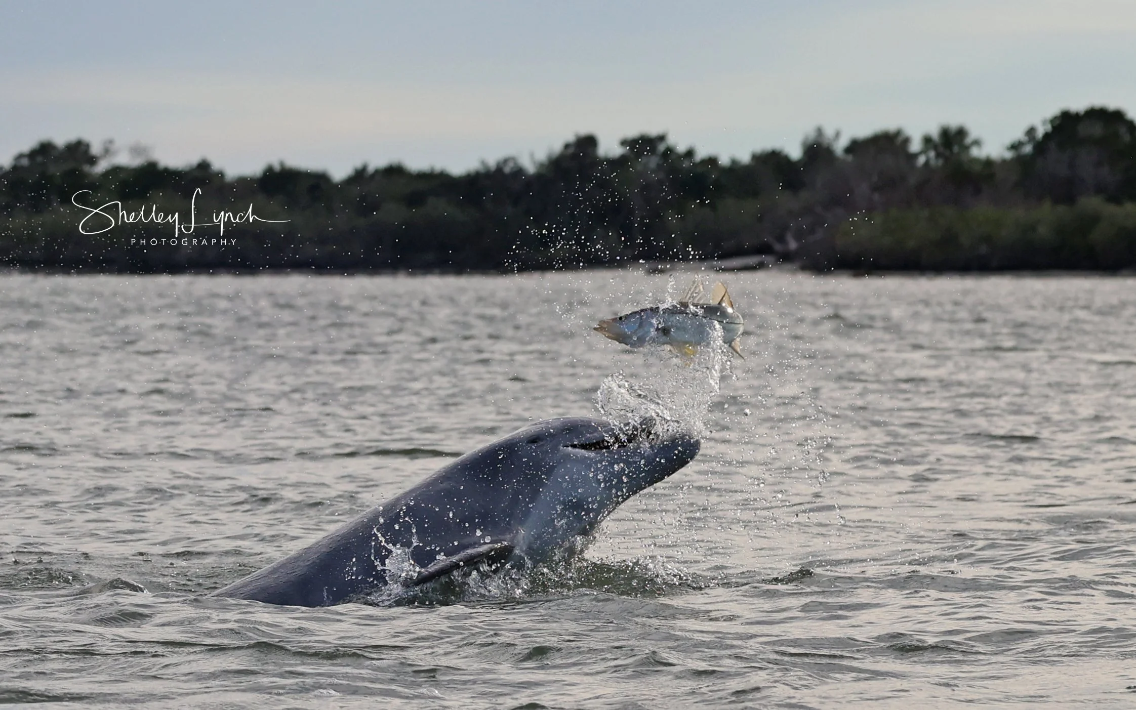 These photos re from the epic holiday party at sunset a few nights ago. Several pod of dolphin came in the lagoon for love, play and good food. It’s the time of year when the mullet are abundant but the cold added snook to the menu this year.