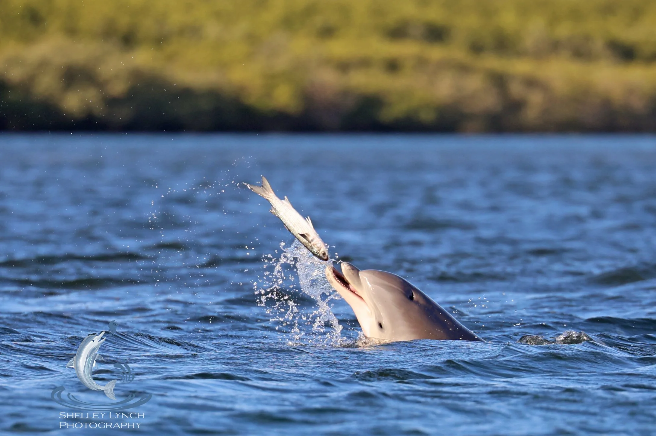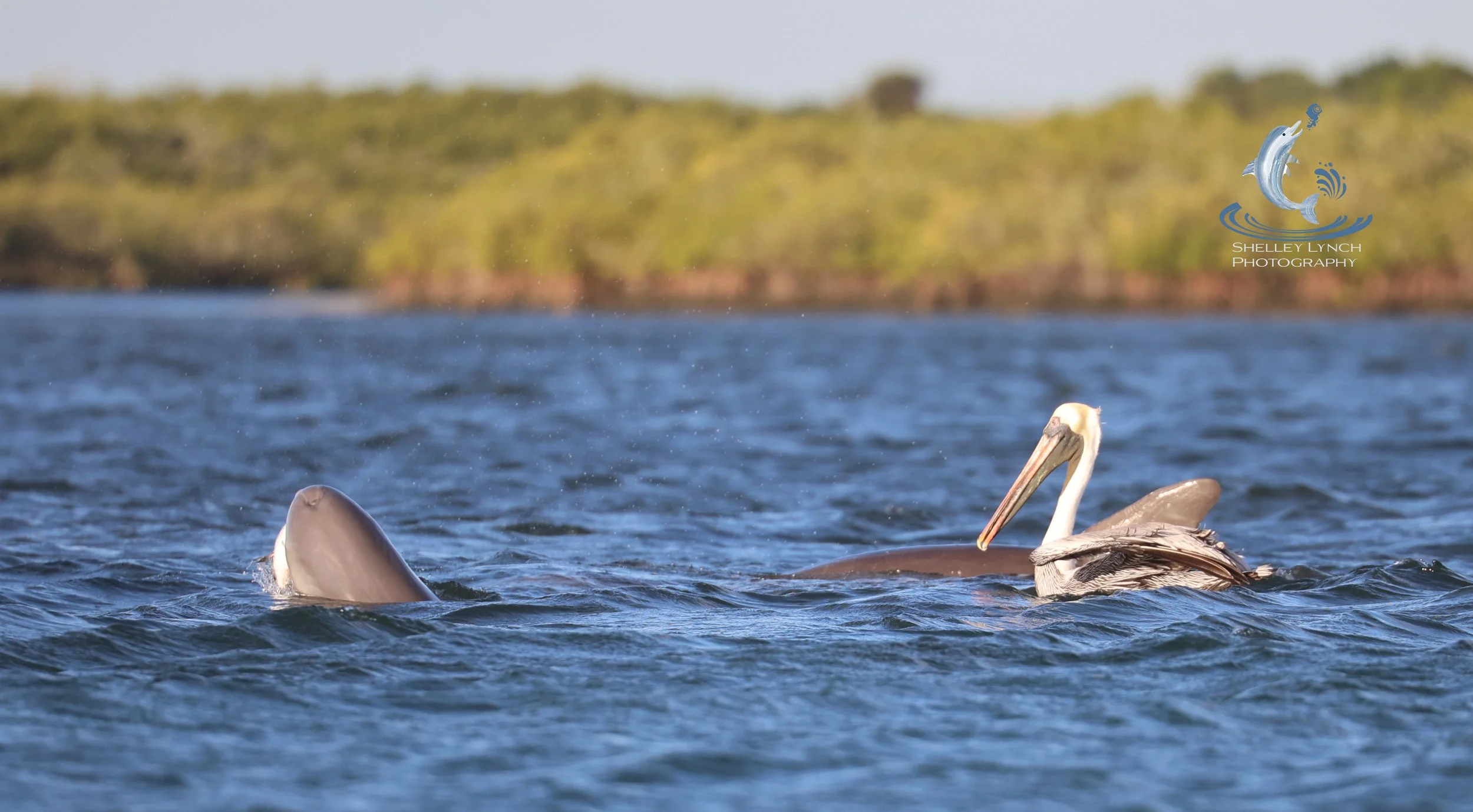 Just after sunrise before the sun was shining on the river, a maternity pod came into the lagoon. A maternity pod of dolphin is a group of moms and their calves making up a dolphin “nursery.”