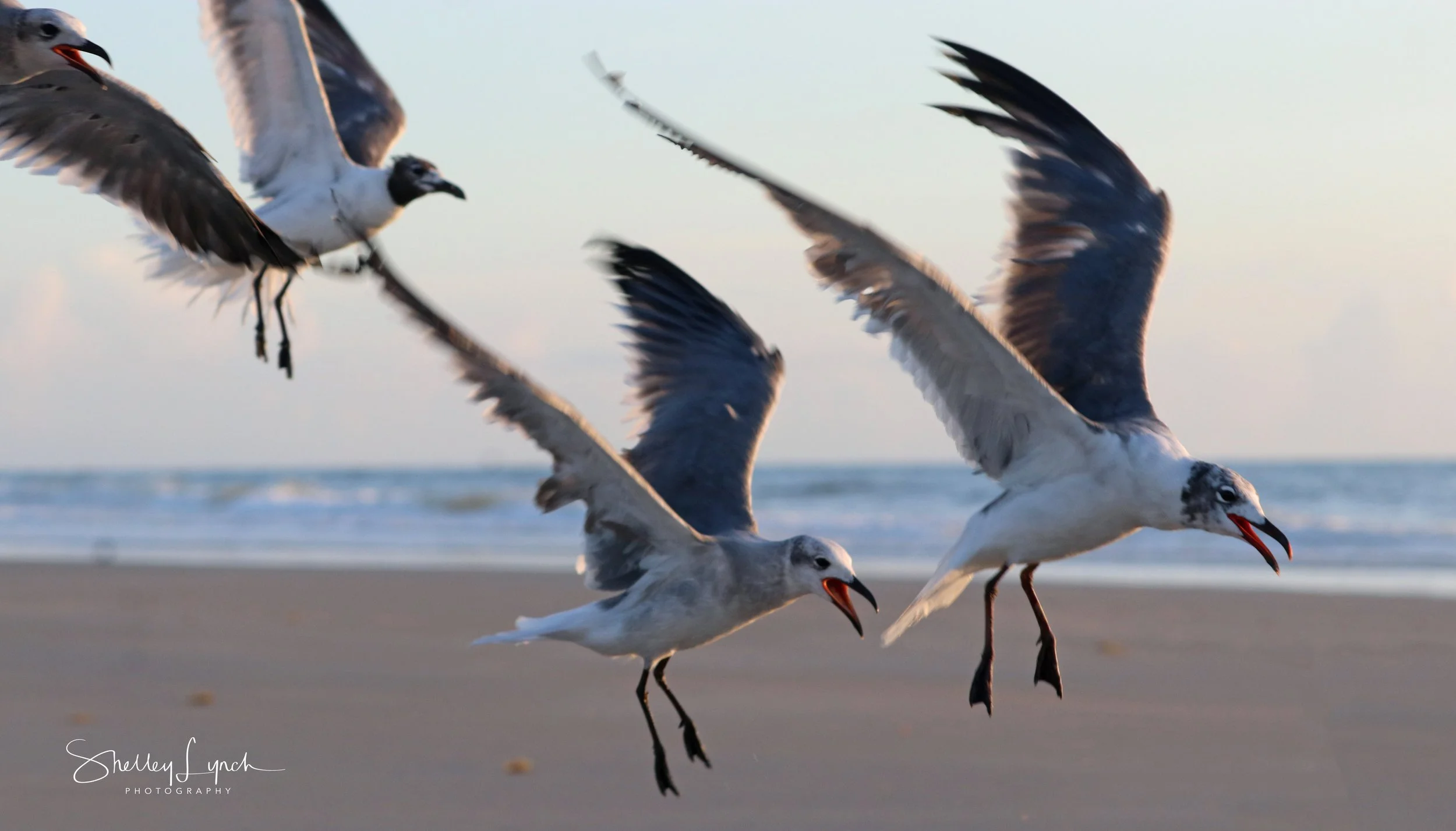 Ahhhh, a sweet and salty sunrise with just a few clouds on the horizon and calm ocean. Pelican Highway traffic was surprisingly light, while seagulls street was packed. The flock of seagulls flew in after the sunrise feeling rambunctious and playful.