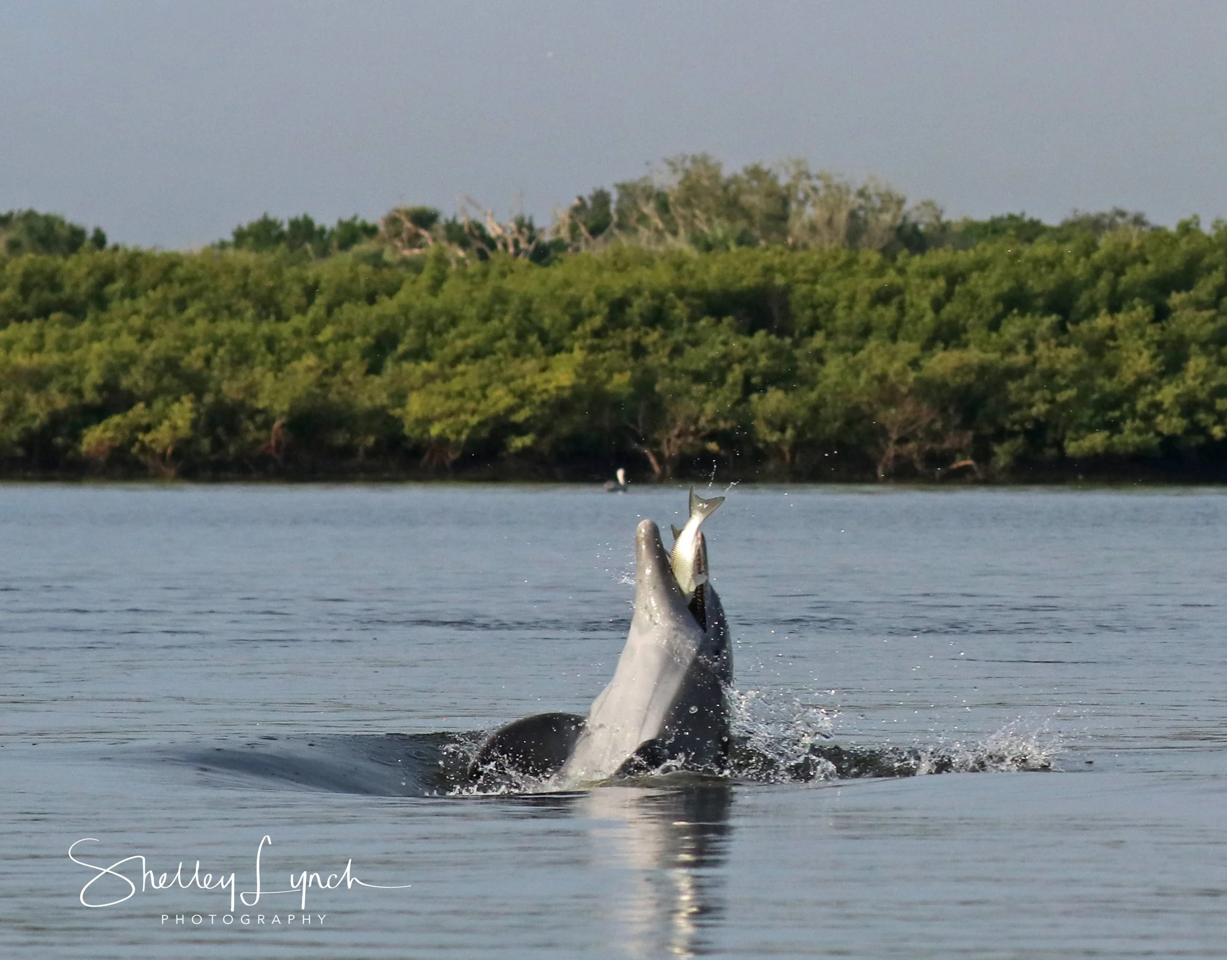 After sunrise, two dolphin came in to grab breakfast. It was obvious they were besties as they showed each other affection. They were chasing fish like a perfect team in synch. They were making beautiful water art as they swam by at mach speed.