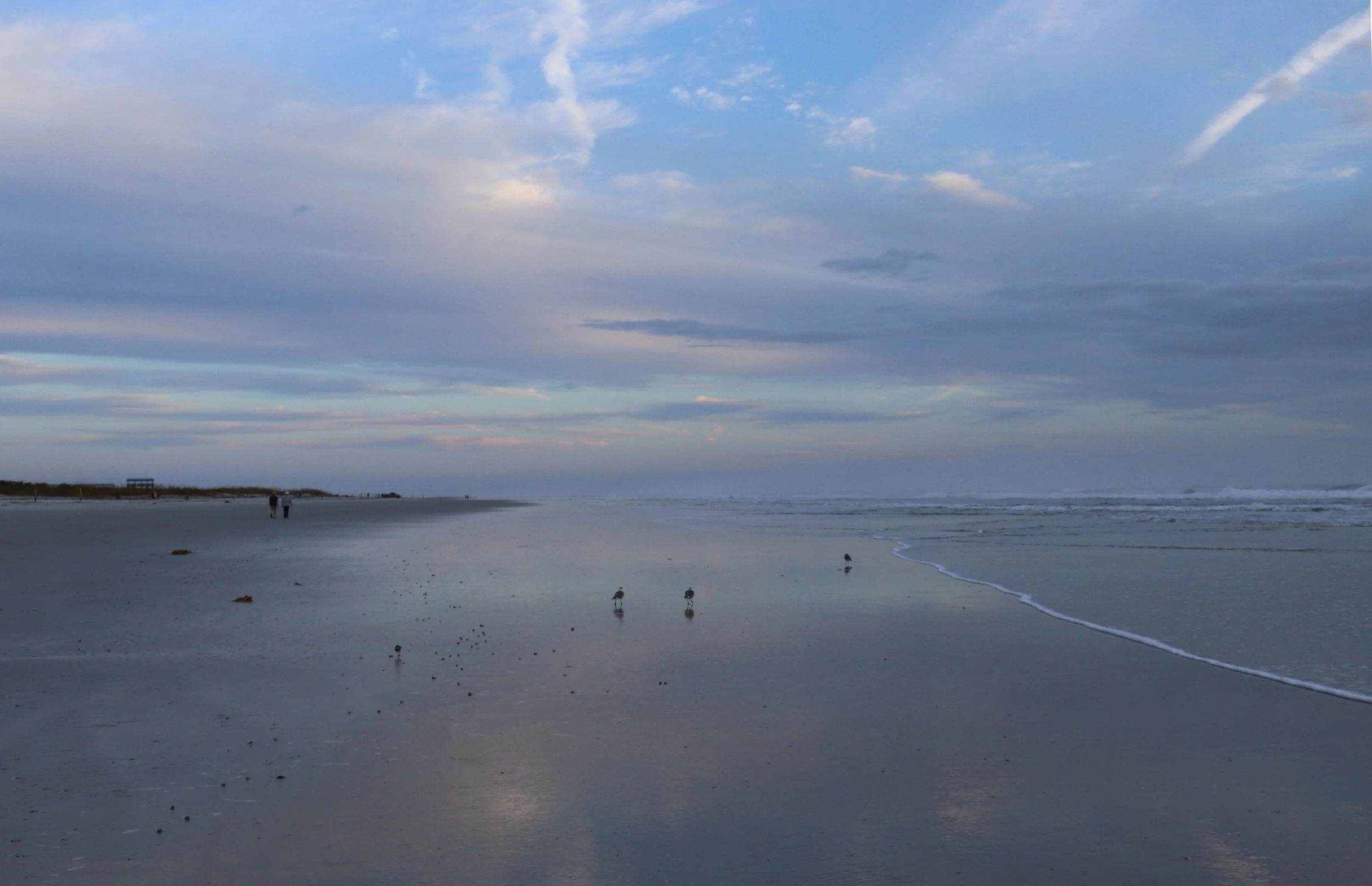 It was a moody bluesy kind of sunrise with thick layer of clouds and fog hanging over the ocean and shore. The sun stayed hidden giving us low light and a romantic vibe.