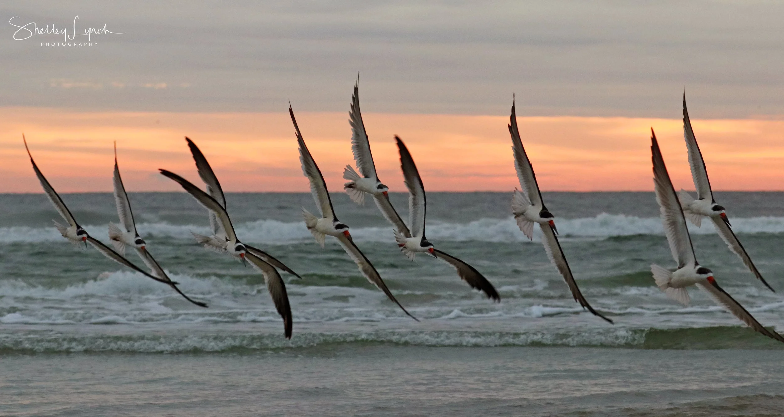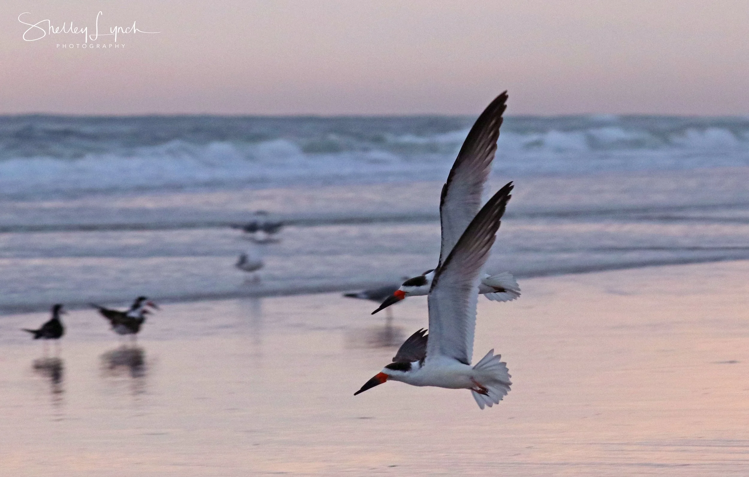 Everyone was present for the sunrise, an osprey, sandpipers, ruddy turnstones, willets, of course the flock of seagulls, pelican highway and skimmers too! At one point a wave of skimmers and seagulls came flying by with a whoosh! The skimmers also joined the traffic on Pelican Highway, such a fun morning with so many feathered friends.