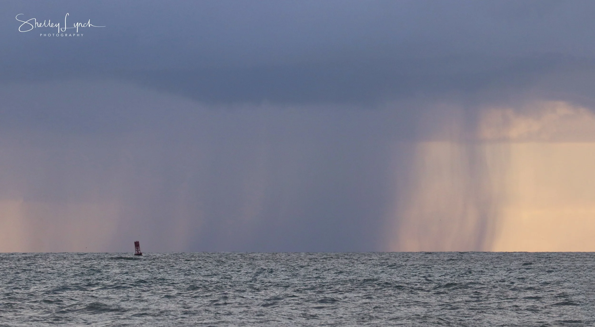 WOW! An awe inspiring masterpiece of a sunrise again this morning. Purple rain streamed from huge fluffy clouds in every direction. The smell of salty rain filled the air.