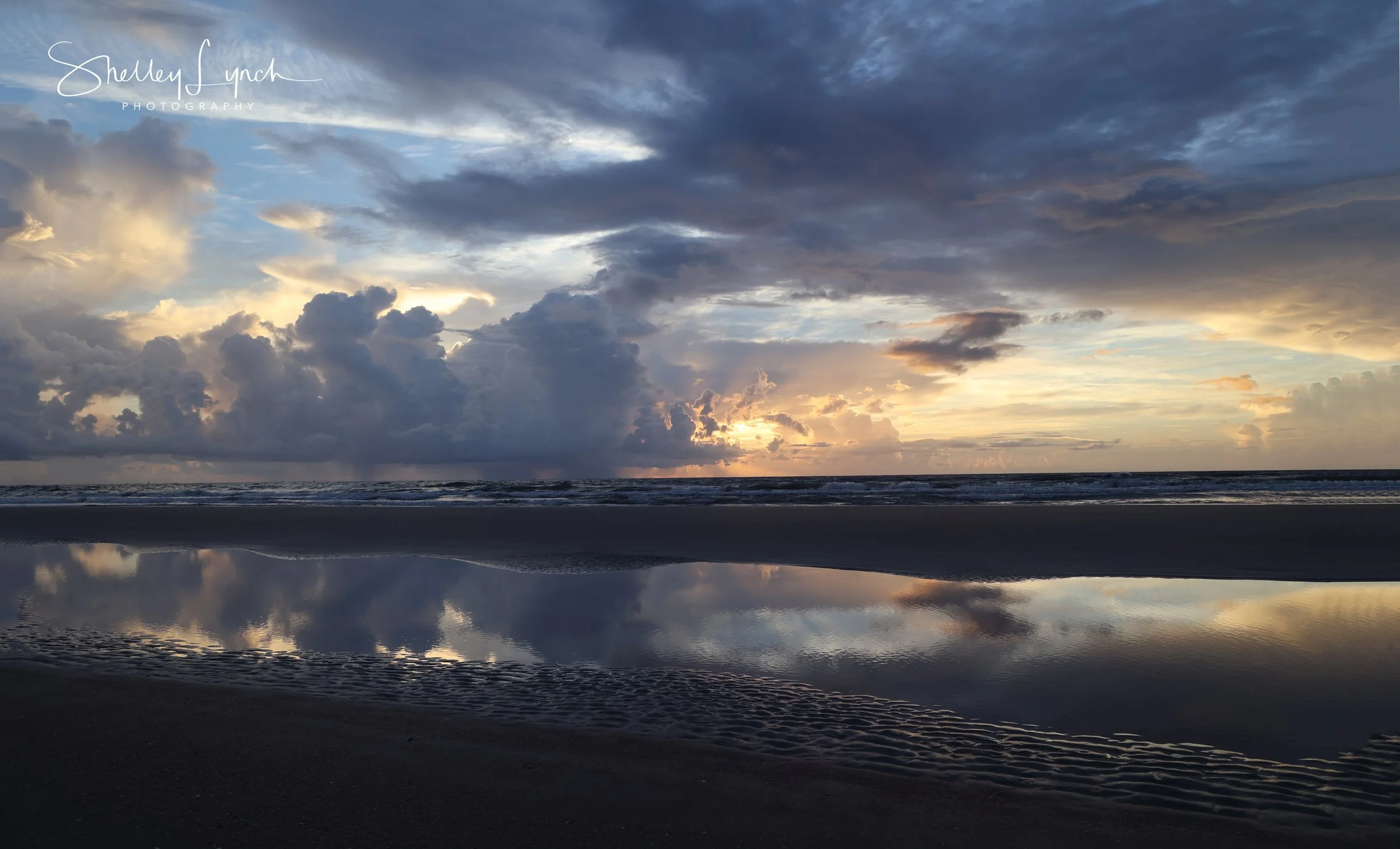 The color show was unique looking as if Mother Nature was trying out a new pastel color palette never seen before. Wet sand reflected the artful drama giving us a mirror image of the beauty and a heart expanding vibe.