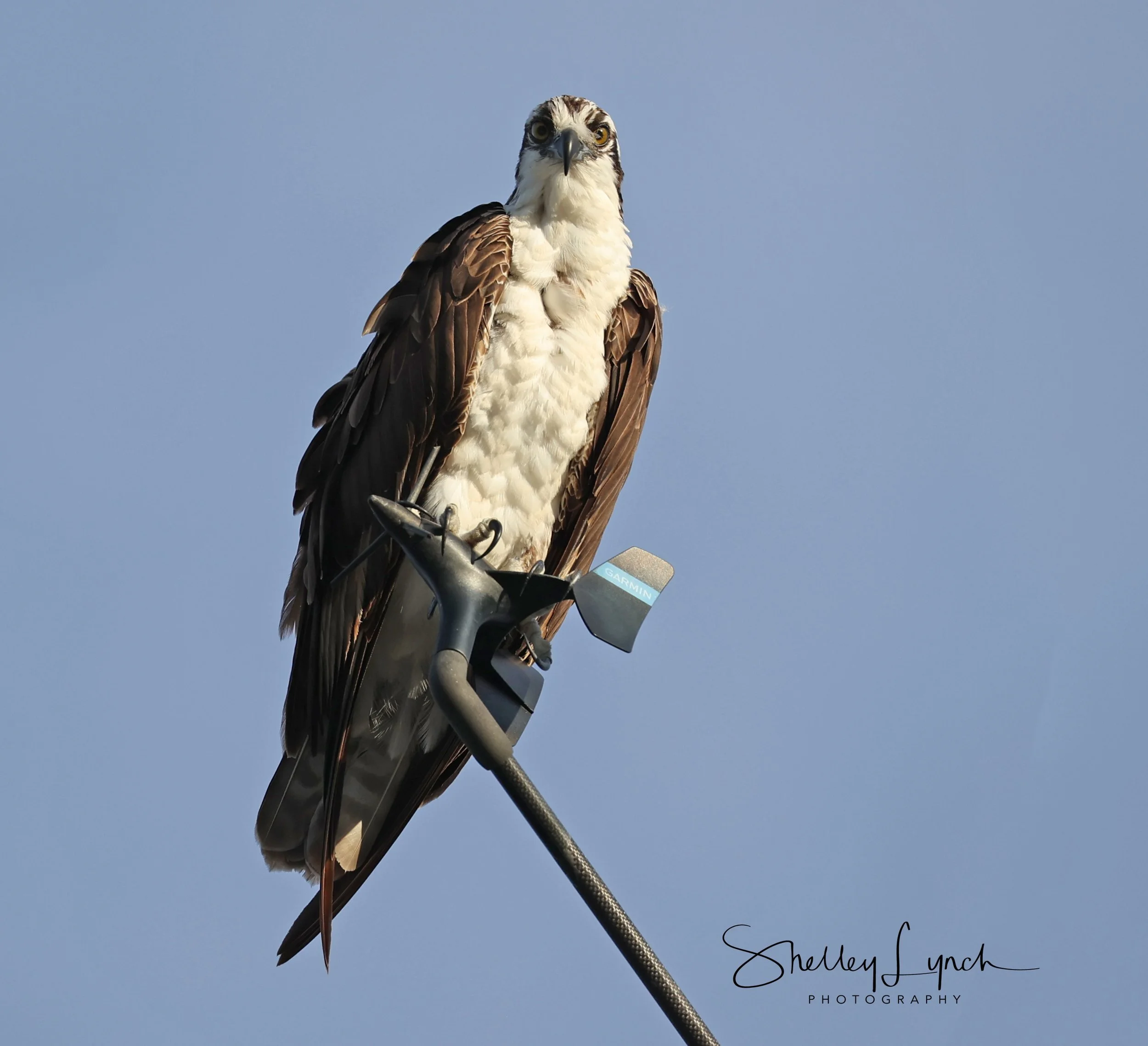 A female osprey was sitting on a wind vane letting the breeze turn her so she could see in every direction with little effort. She looked right at the camera and said, “I’m here to encourage using the resources at your disposal. I can hang out here, letting the wind vane show me all the angels so I can see all the fish in the sea.”