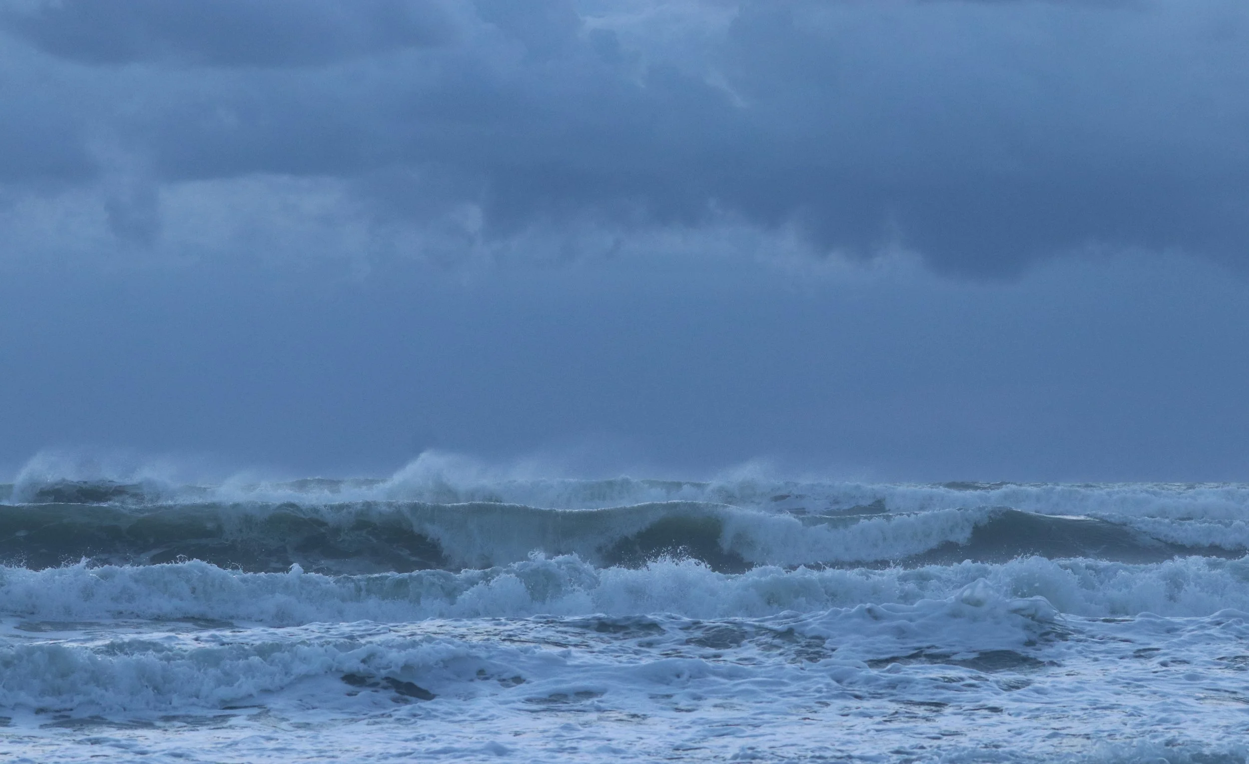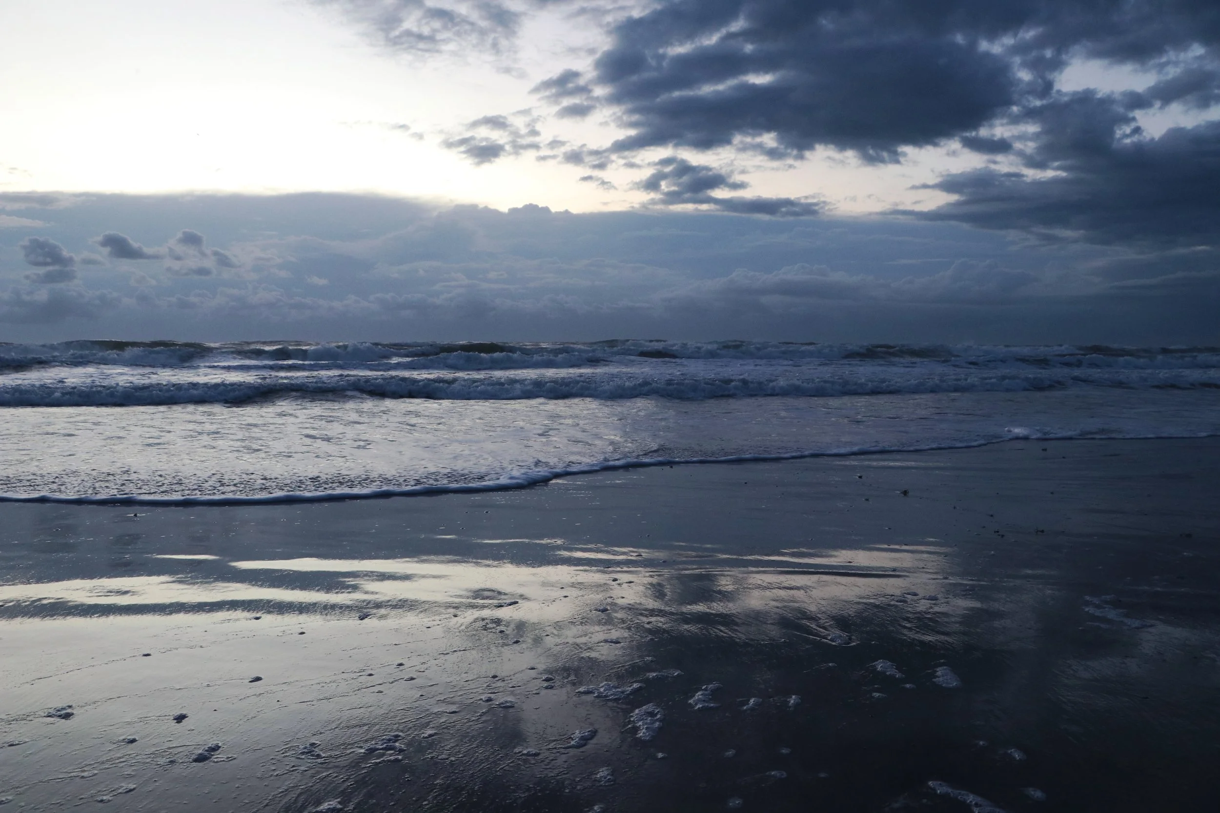 It was a combination of a moody blues, fifty shades of grey with a dash of pretty in pink. The ocean was churning while the wind howled, blowing the tops of the waves as they crested.
