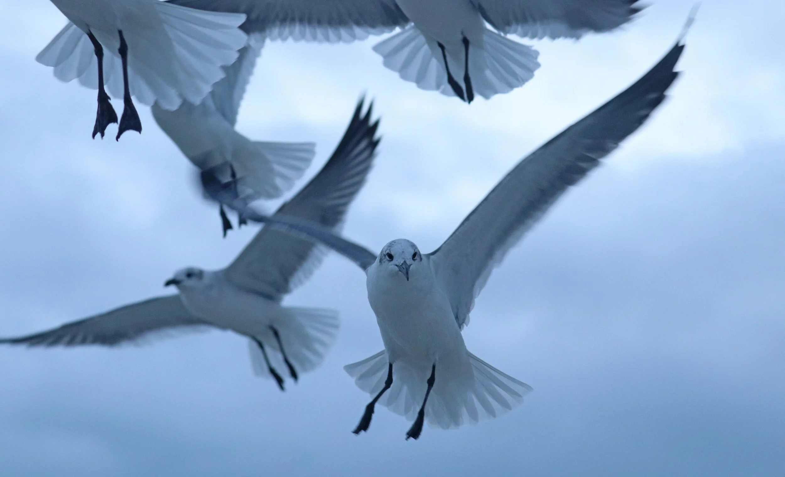 A huge flock of seagulls flew in hot and chatty. They wanted to fly close and connect before heading in for bath time in the shimmery light. They were enjoying the buddy system while bathing.