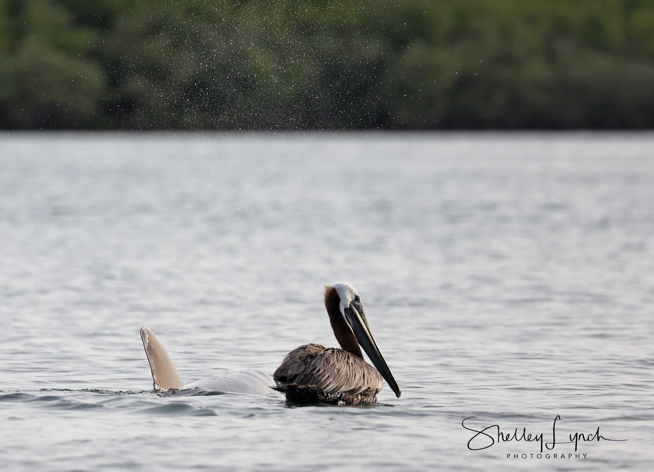 After sunrise Momma Jade , her latest baby and another adult stopped by to enjoy a little quiet time together. A solo pelican joined in to relax with her flippered friends.