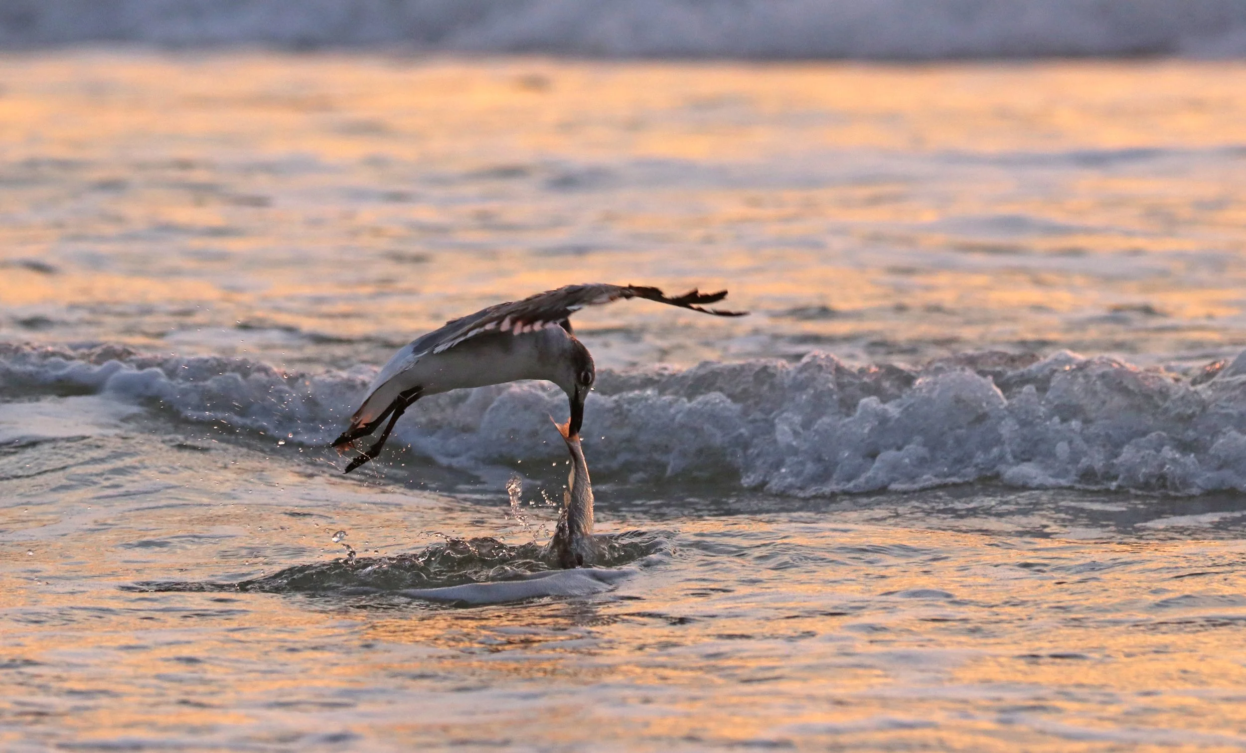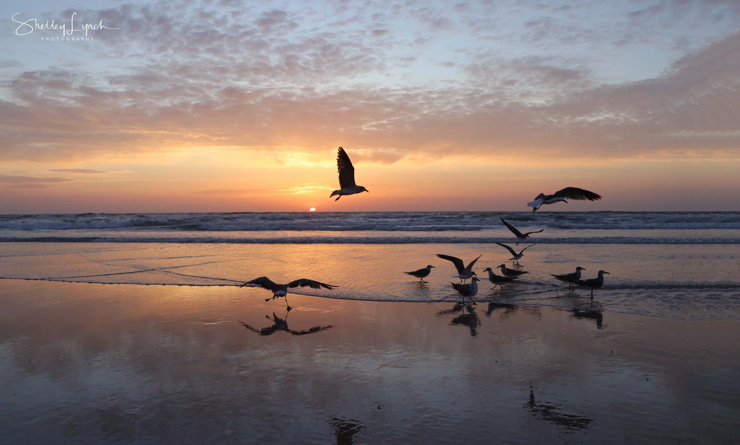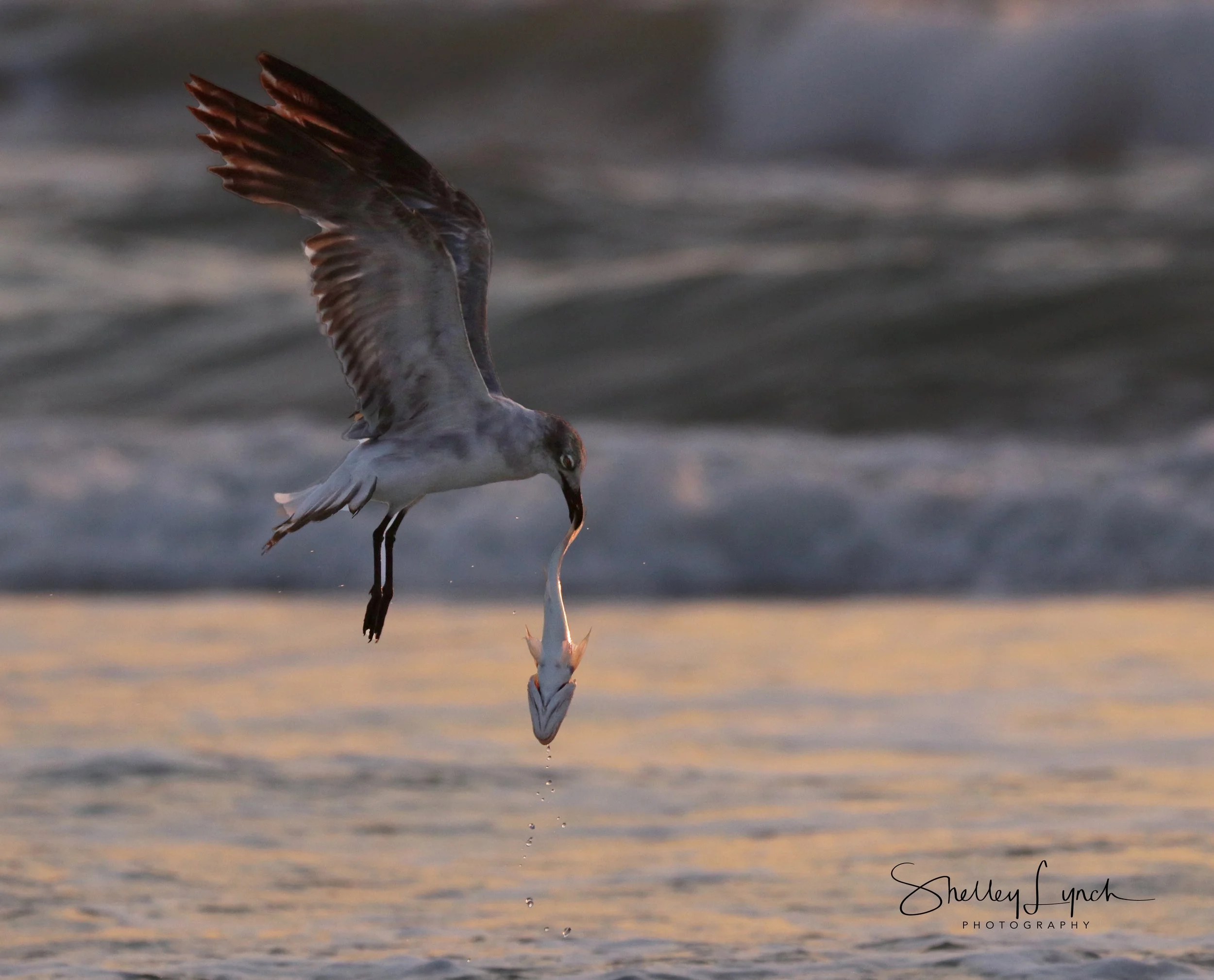 The very chatty flock of seagulls flew in with hearts and wings open. The drama began when the flock found a fish in the waves. They hovered above the fish while each bird tried to pick up the fish that was almost as big as them.