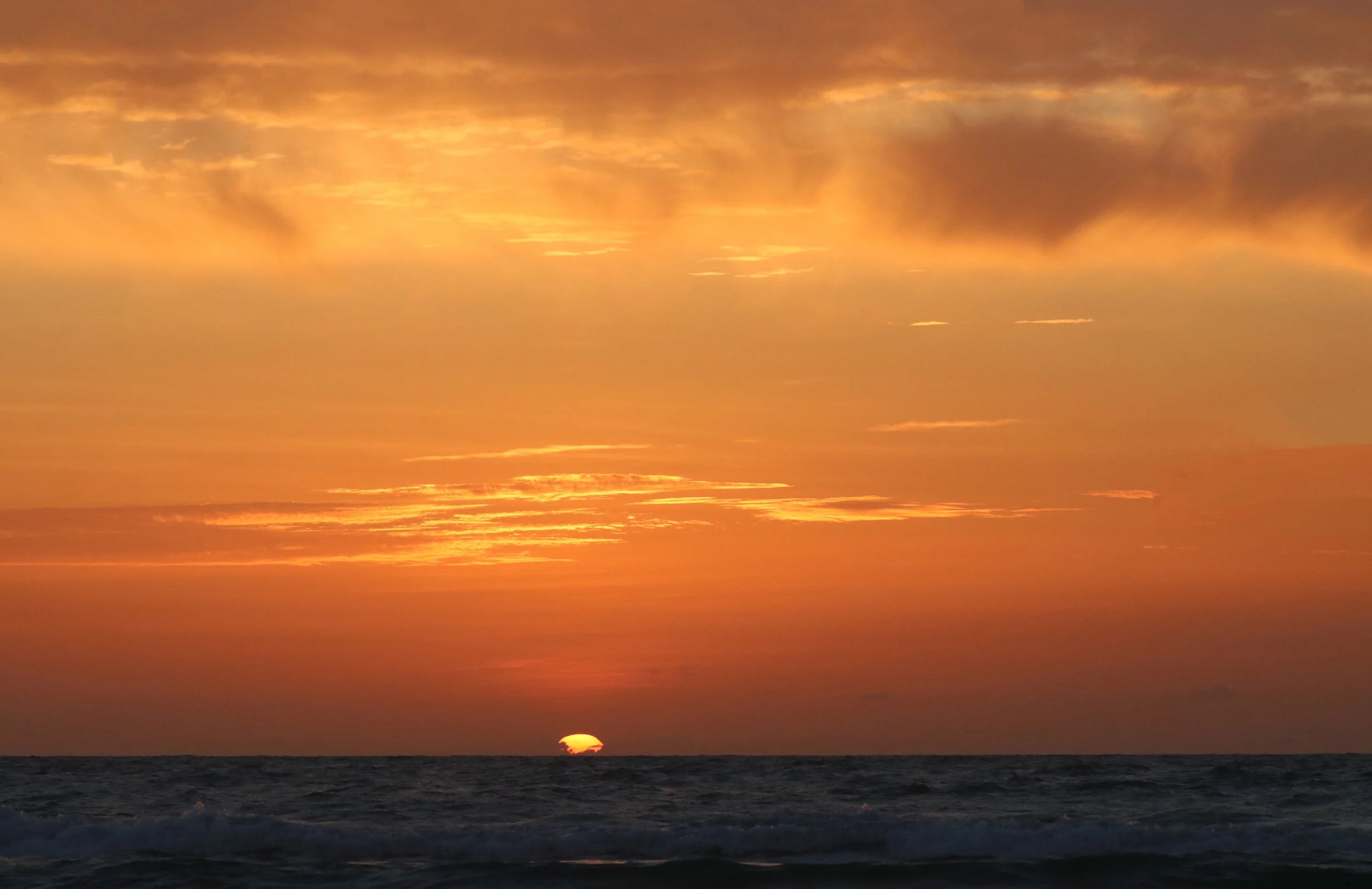 Another beautiful reflective sunrise with exquisite colors courtesy of the Sahara Sands. The wind was blowing while the ocean churned. The clouds kept the light from the sun low, adding to the cozy feeling of the morning.