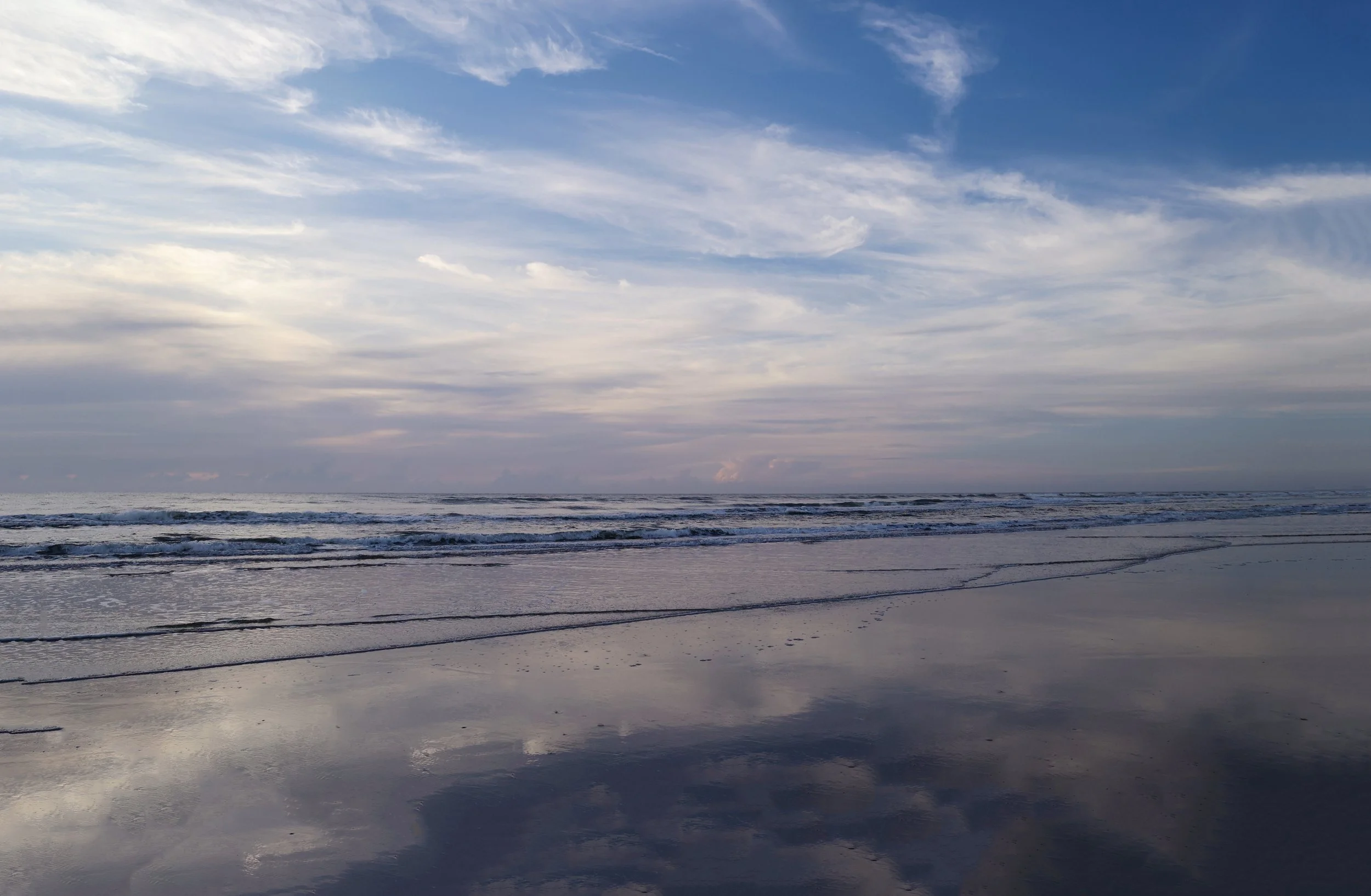 Mother Nature brought us a gentle and soft sunrise today. A light breeze and calm ocean added to the peaceful vibe of the morning. Low tide gave us a mirror image of the sunrise which looked like a masterful painting.