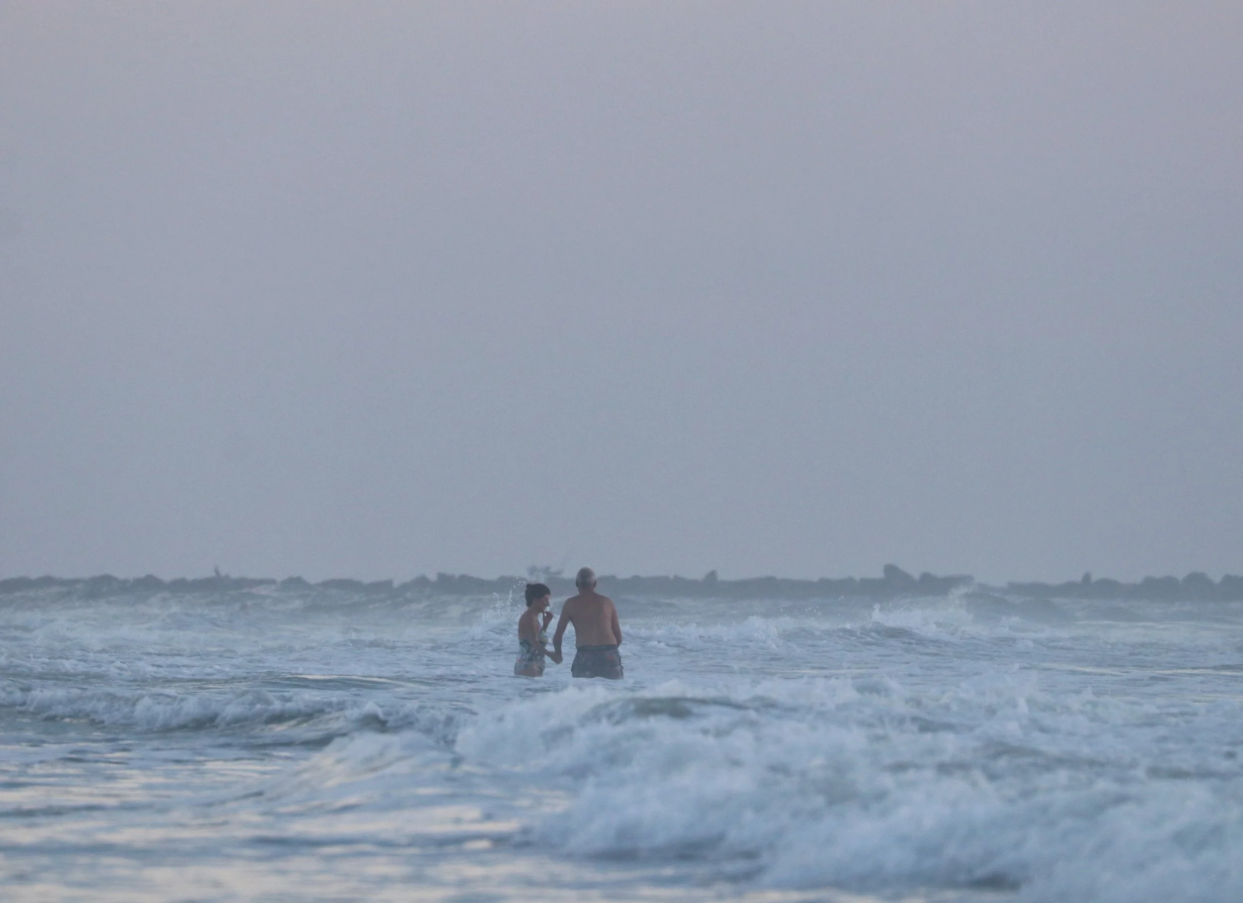 Finally a couple down the beach were playing in the waves. The gentleman reached out to hold her hand, adding to the message of support.