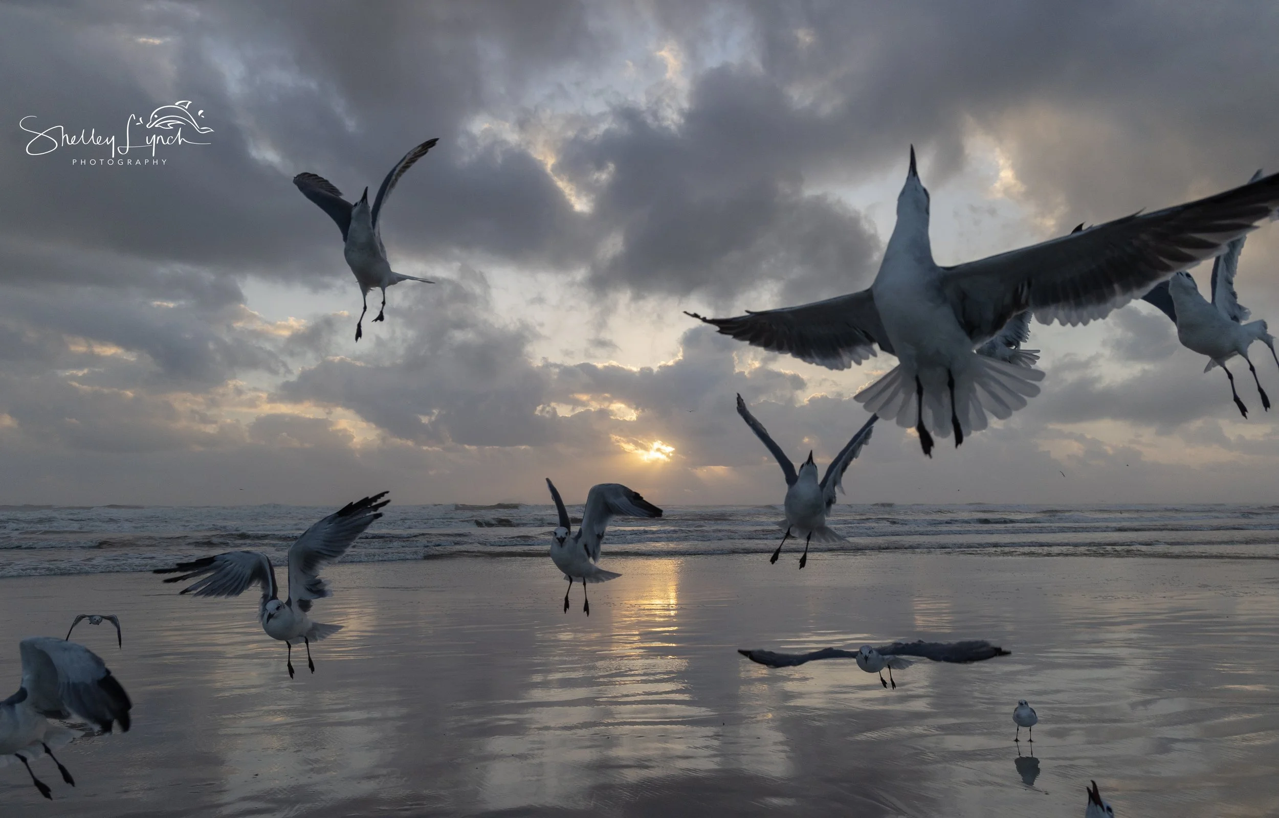 Mother Nature mixed several colors, giving us a unique color palette. Waves rolled in, sending salty foam flying in the wind. The flock flew in, using the wind to hang in place. Pixar the laughing gull hung overhead to connect.